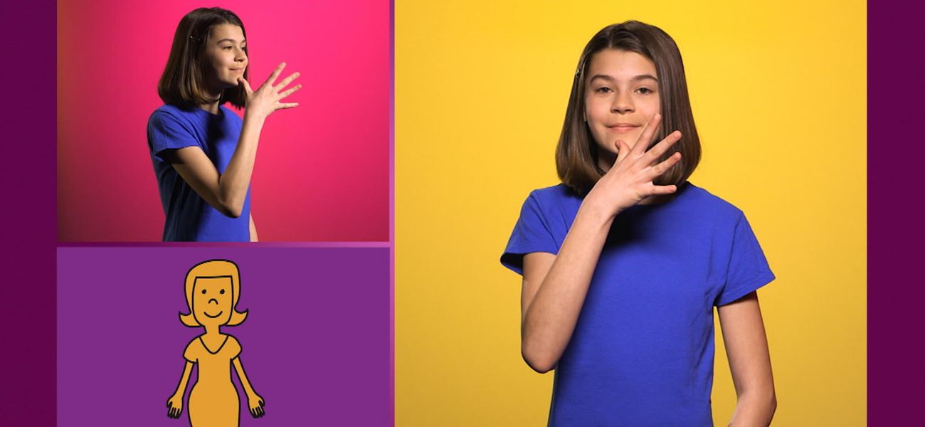 Your friend Emma is waiting to show you some new sign language (LSQ) words. Today, learn some family members. She will show you how to do it: mom, dad, brother and sister.