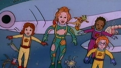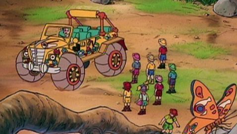 The magic bus plays baseball to demonstrate that without friction, i.e. without a fulcrum, no force can be exerted. Anne-Sophie explains to the class that push, pull and friction are the basis of every movement and every stop.
