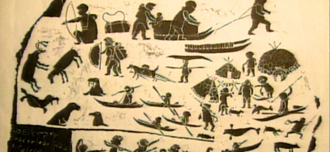 The children analyze Hunters who Went Adrift by Joe Talirunili, 1965.