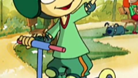 Lucas, Emma and Thomas are stopped by work on the sidewalk. As a man has put his garbage cans in front of the signs that indicate the safe path, they are about to walk down the street. Célestin stops them in time. The children must point out to the man the confusion he is causing by hiding the signs.