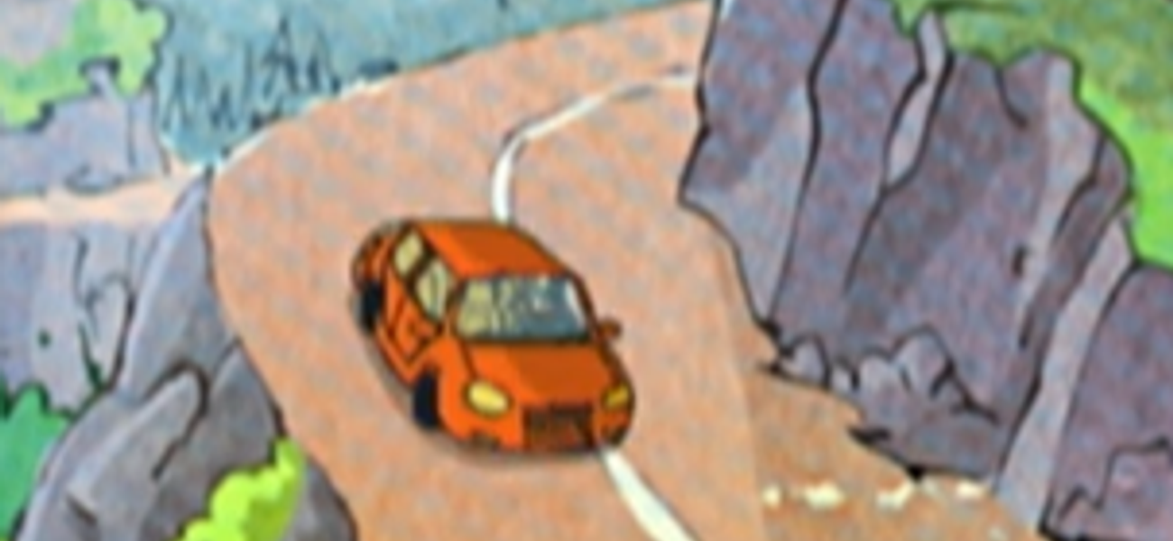 Lucas gets in the car with his dad to drive to the mountains. Very quickly, the curves make him feel sick. Dad suggests to Lucas to roll down his window to get some fresh air. Woofy also looks bad. Lucas rolls down his window and puts its nose in the wind. A bus arrives on the narrow road. It comes so close to the car that it tears off the rear-view mirror. Lucas has just enough time to reach for Woofy. Lucas understands that in a car, you should never put your arm or your head out of the window.