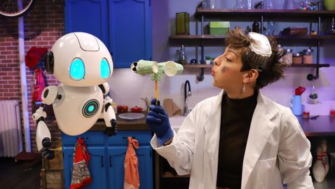 Sabrina panics. There's a power outage in the loft and she has nothing to light her way except her laptop, which is about to shut down. Leo immediately contacts the geniuses. They offer to make a flashlight and an electric train so that they can light up the room and have fun while waiting for the power to come back on!