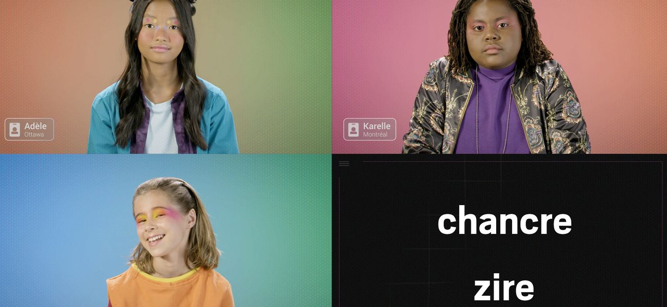 Adèle, Alexie and Karelle finish a particularly difficult math assignment with a big ouf! Alexie throws out an Acadian expression that her friends have never heard before, prompting the three girls to find other colourful French expressions and words of foreign origin.