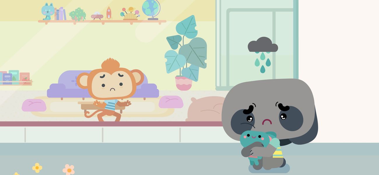 Oh no, Youpi has to leave! Snif feels abandoned and bursts into tears. Zoumzoum tries to distract him, but Snif feels completely misunderstood. Bisou knows that you can't chase away sadness, but you can accompany it.