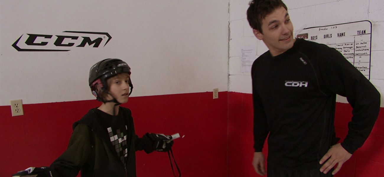 Olivier loves playing field hockey but would like to improve his agility and acceleration. To help him, he calls on Patrick Laurin who gives him an intense training session.
