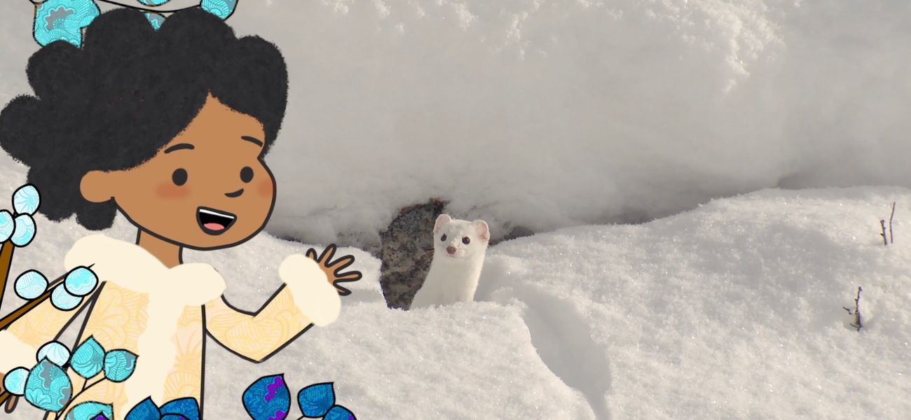 Pretty ermine, here you are! You live in cold regions where winters are snowy. You are a solitary animal, which means that you prefer to live alone, or with your young if you are a female. Your coat has a different color depending on the time of the year. During the warmer seasons, you are brown on top and white on the bottom. And then in winter, it's not the same: your hair becomes all white! Except for the tip of your tail, which is always black.