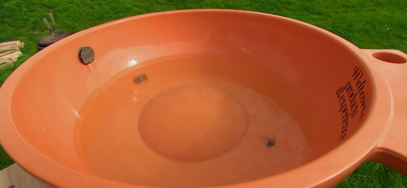 Pat et Bibi fabriquent une baignoire en polymère et en fibre de verre pour prendre un bain en plein air avec de l'eau chauffée au feu de bois.