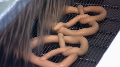 On a tour of this pretzel factory, Pat discovers that each pretzel is twisted by hand.