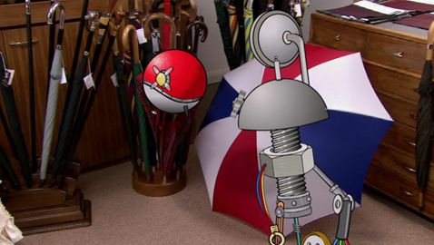 With a simple wooden handle, rods and fabric, Pat and Bibi learn how to make an umbrella.