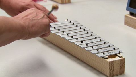 Our two characters learn how to make and play the xylophone.