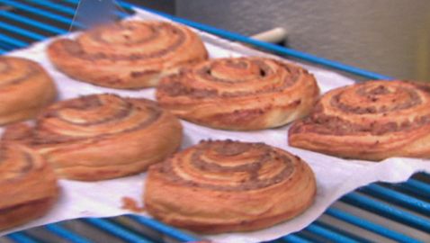 Pat and Bibi try to guess what bakers are making with sweet dough and nut and cinnamon filling.