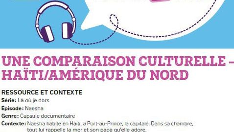 For the FSL teachers, this pedagogical sheet supports the vignette ”Naesha” from the series “Là où je dors”. FSL Overall Expectation: A3 - Intercultural understanding.