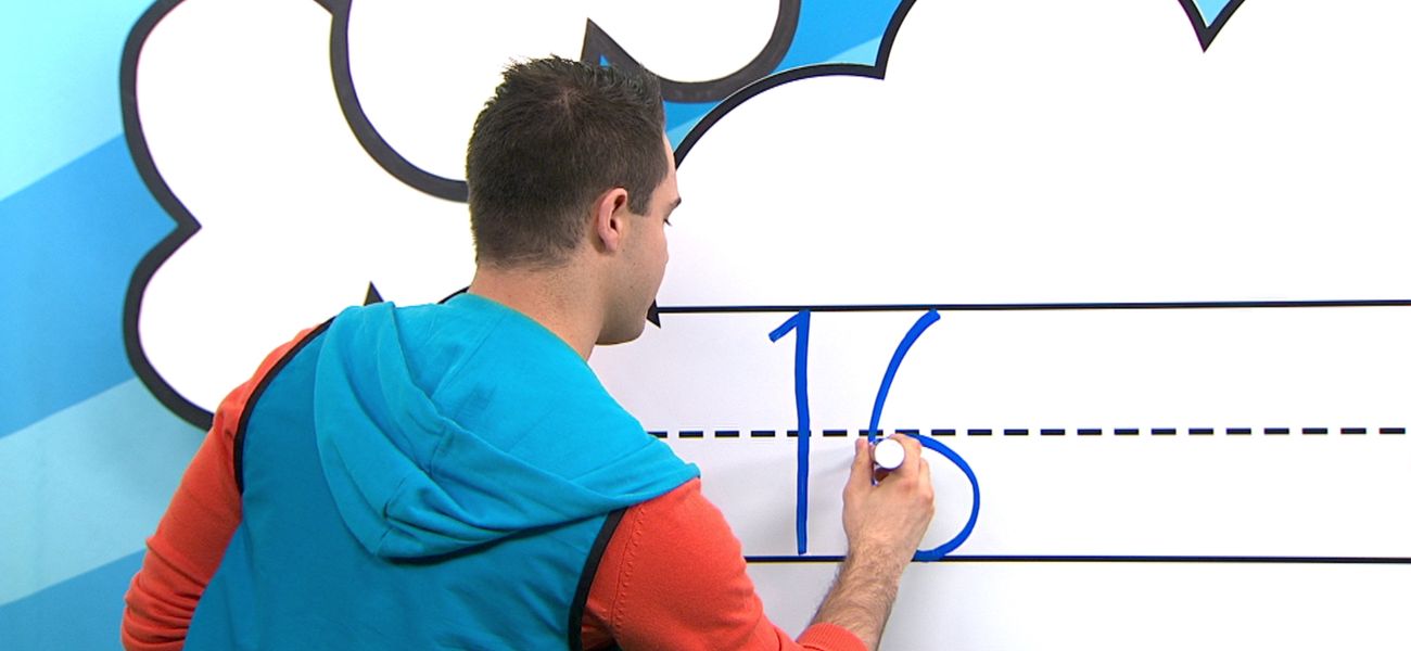 Louis and Josée present the numbers from 1 to 30. Josée presents the number 1.