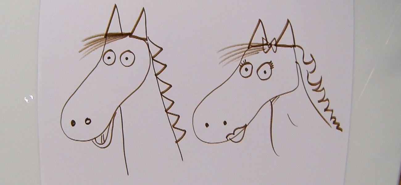 How do you draw horses using socks? Tristan uses two socks and geometric shapes to draw horses.