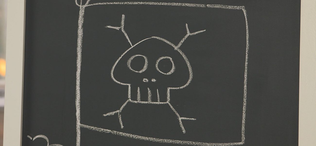 How does one draw a pirate flag? Tristan uses the shape of a mushroom, geometric shapes and the letter 'Y' to draw a pirate flag.