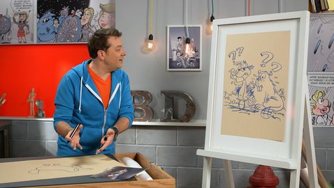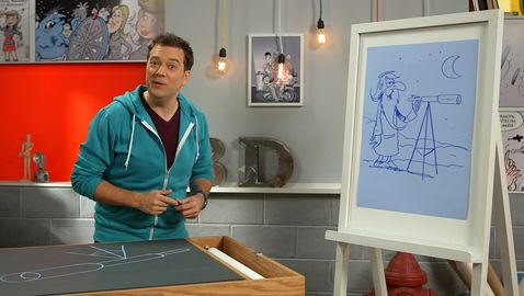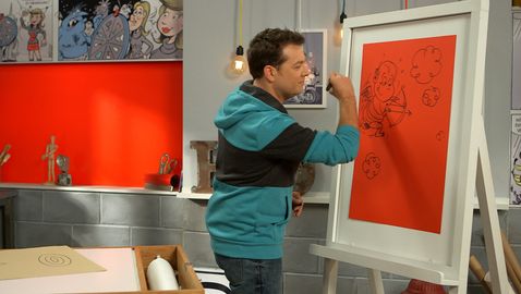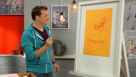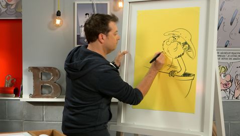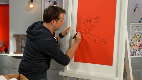 How to draw a pig? Tristan uses the shape of a plastic bottle, seen from the front, and geometric shapes to draw a pig.