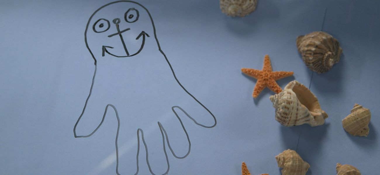 How to draw an octopus? Tristan uses the shape of a boat anchor and the shape of his hand to draw an octopus.