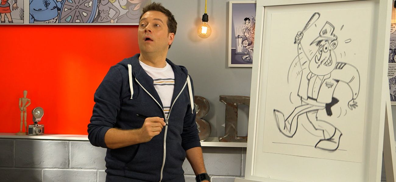 Tristan is inspired by the treble clef and geometric shapes to draw a thief.