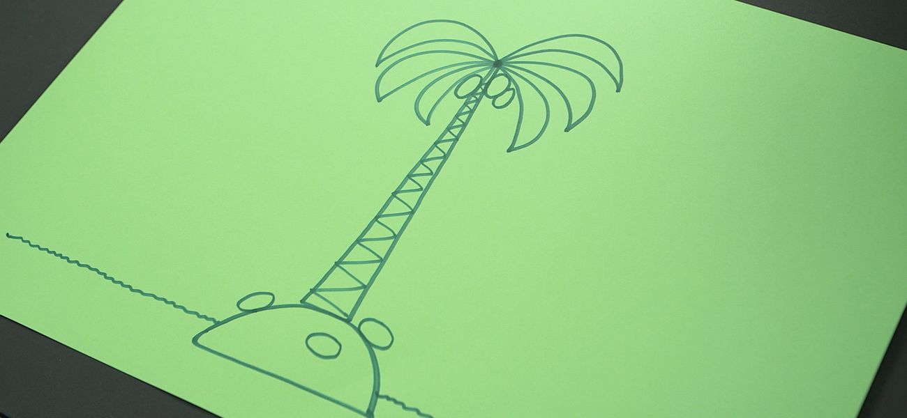 Tristan teaches us to draw a palm tree on a deserted island.