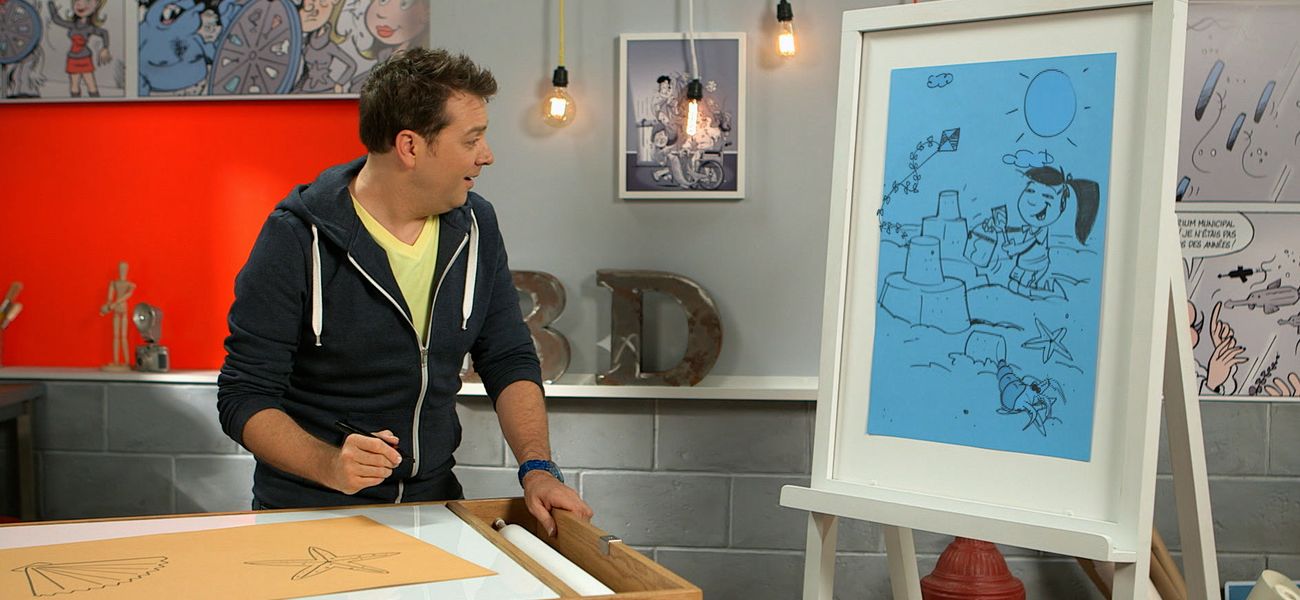 Tristan teaches us how to draw a shell and a starfish, using geometric shapes.