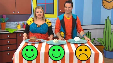 Louis et Josée découvrent si les noisettes, le houmous et les boissons gazeuses sont des aliments bons, ou moins bons pour la santé.