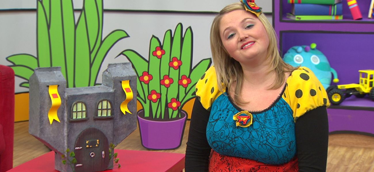 Josée finds a manor house under the tent and recites the nursery rhyme “La cloche du vieux manoir”, inviting the children to sing along.