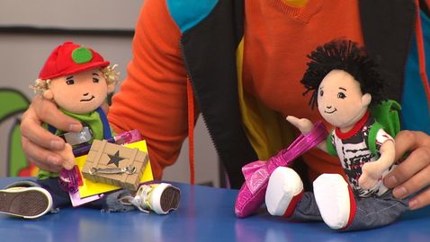 Louis, Josée and Lexie tell stories. Louis tells a story about Nicolas and his bag.