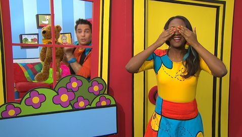 Lexie joue à un jeu de cachette avec Louis et nous fait découvrir l'expression «dans un coin»..