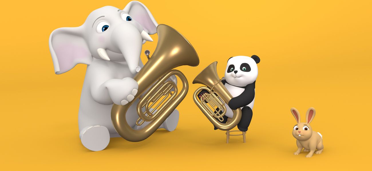 Lilou Bambou is surprised by a big low sound. She then discovers Rabbit playing the tuba, an imposing instrument whose gigantic size and sound impresses every time.