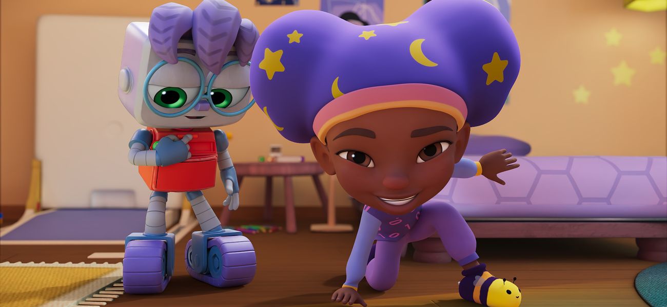 Unintentionally, Codie introduces an anomaly into the code by adding a “CÂLIN” cube. Codie is afraid that Mia will forget to give him a hug, so he adds a “CÂLIN” cube to the closet code, causing an anomaly and a hurricane of clothes. Fortunately, Mia knows what to do: she corrects the code and gives her little robot brother a hug.