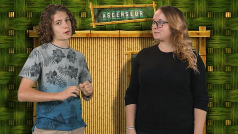 Going up on an elevator, Pascal Potvin must pitch the characteristics of her job of digital designer to Seana, in order to convince her that it is an interesting job!