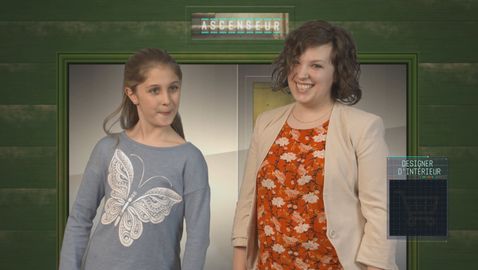 Going up on an elevator, Émilie Lavoie must pitch the characteristics of her job of Interior Designer to Anne-Sophie, in order to convince her that it is an interesting job!