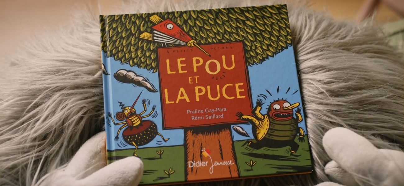 Léon has chosen the story of the day and tries to get Nina and Yétili to guess the title by miming it.