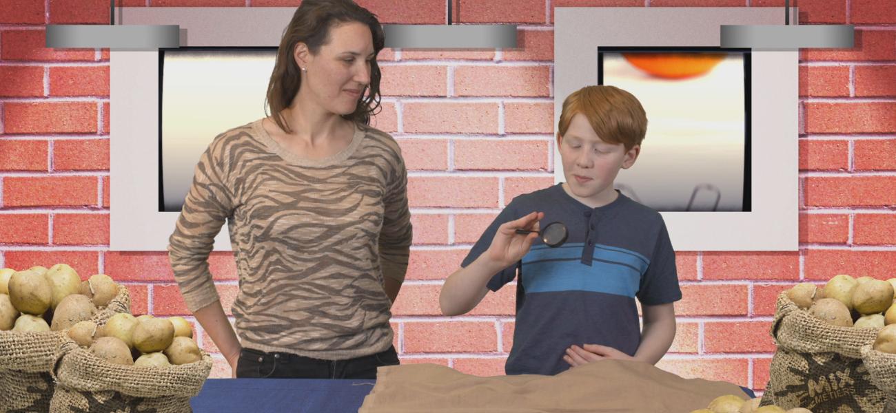La nutritionniste Jacinthe Côté a placé trois éléments essentiels à son métier dans la poche à patates. Il ne reste plus à Dalí qu'à les identifier et deviner à quoi ils servent!