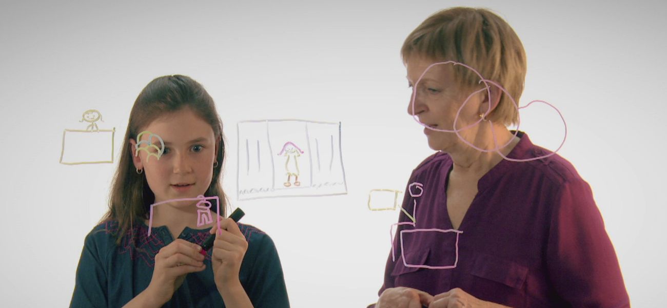 ·Éliane and her grandmother Denise draw a memory they share, a day of shopping together, and tell the story.