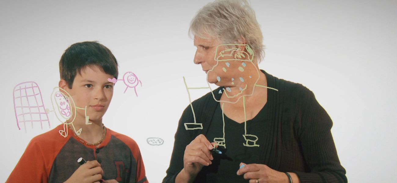 Améliane and her grandmother Danielle draw a memory they share, a day on a pedal boat, and tell the story.