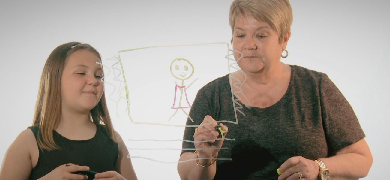 ·Laurie-Ann and her grandmother Diane draw a souvenir: Laurie-Ann's dance performance. By drawing, they tell of this beautiful moment when grandma was very proud of her granddaughter.