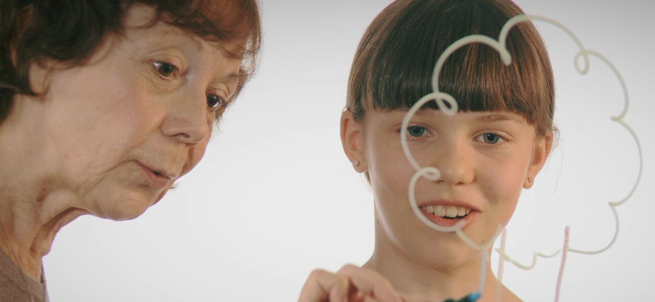 Jasmine and her grandmother Lucie draw a memory they share, gardening at grandma's, and tell the story.
