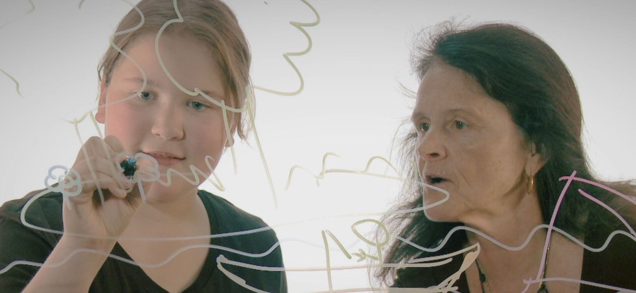 Jasmine and her grandmother Lucie draw a memory they share, gardening at grandma's, and tell the story.