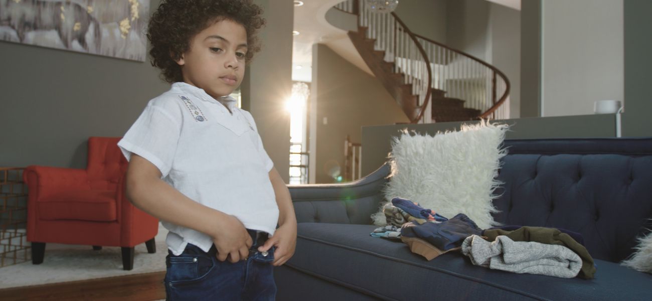 Avery is getting ready for school but has to get dressed by himself. When he puts on his pants, he puts one leg in at a time. He finds the hole in his shirt and puts his head through it before putting his arms in. He takes his time and gets dressed little by little. He can get dressed all by himself. How about you? Are you ready?