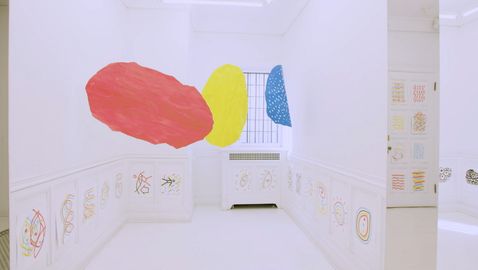 Hervé Tullet creates a souvenir wall of his creations, like a meeting point for all experiences.