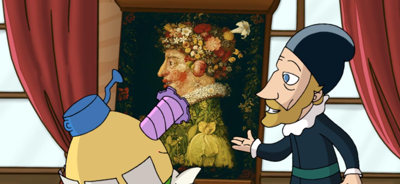Arcimboldo dazzles Mati and Dada with his fantastic paintings with multiple images.