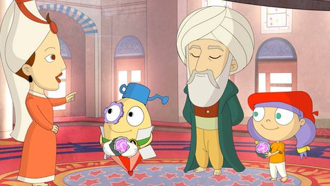 Mati and Dada visit the Mihrimah Mosque with its architect Mimar Sinan, who explains their concept that favors the play of light inside and outside.