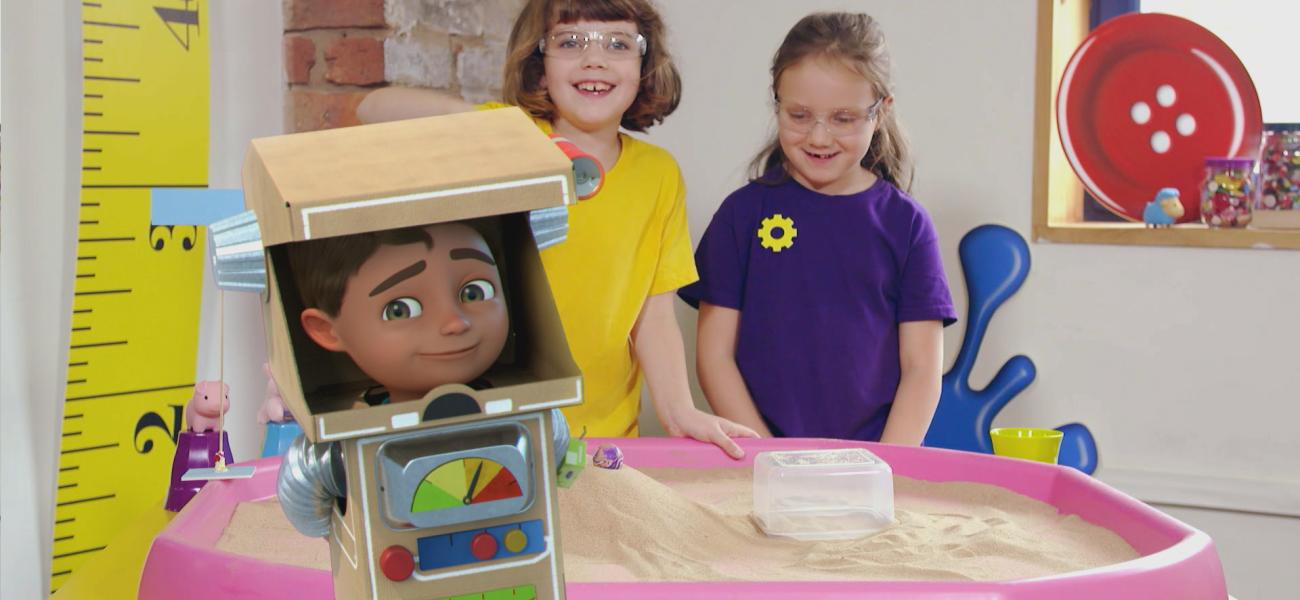 Bitz and Bob remember one of their adventures where they had to build an ultra-resistant house to protect the three pigs from the big bad wolf-robot. In a studio, children try the same using materials around them. They note that bricks are a good choice for building a strong and resistant house.