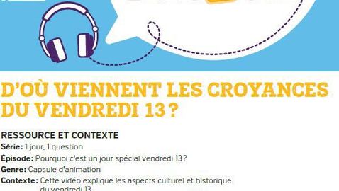 For FSL teachers, this pedagogical sheet “Where Do the Beliefs of Friday 13 Come From?” supports the vignette ”Pourquoi c’est un jour spécial Vendredi 13?” from the series “1 jour, 1 question”. FSL Overall Expectation: A3 - Intercultural Understanding.