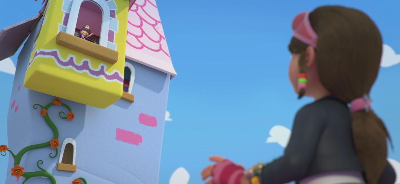 Bitz tente de venir à la rescousse de la princesse Raiperle, retenu par Bob le grand méchant Robot-loup en haut d'une tour. Mais pour la délivrer, il faut trouver un moyen de lui faire parvenir ses pelotes de laine, pour qu'elle puisse tricoter une échelle.