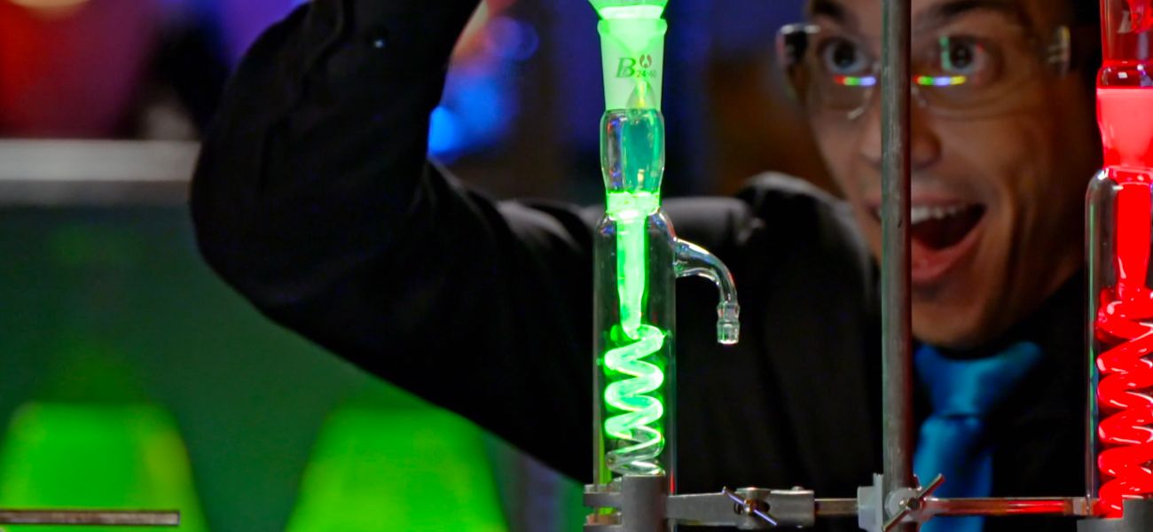This episode explores the secret of glow sticks. How do these plastic tubes produce light without electricity? Chemistry! It's called chemiluminescence. In his lab, Yannick performs splendid chemiluminescence experiments. This inspires Daniel to perform a "magiluminescent" trick with a light bulb and a glow stick.