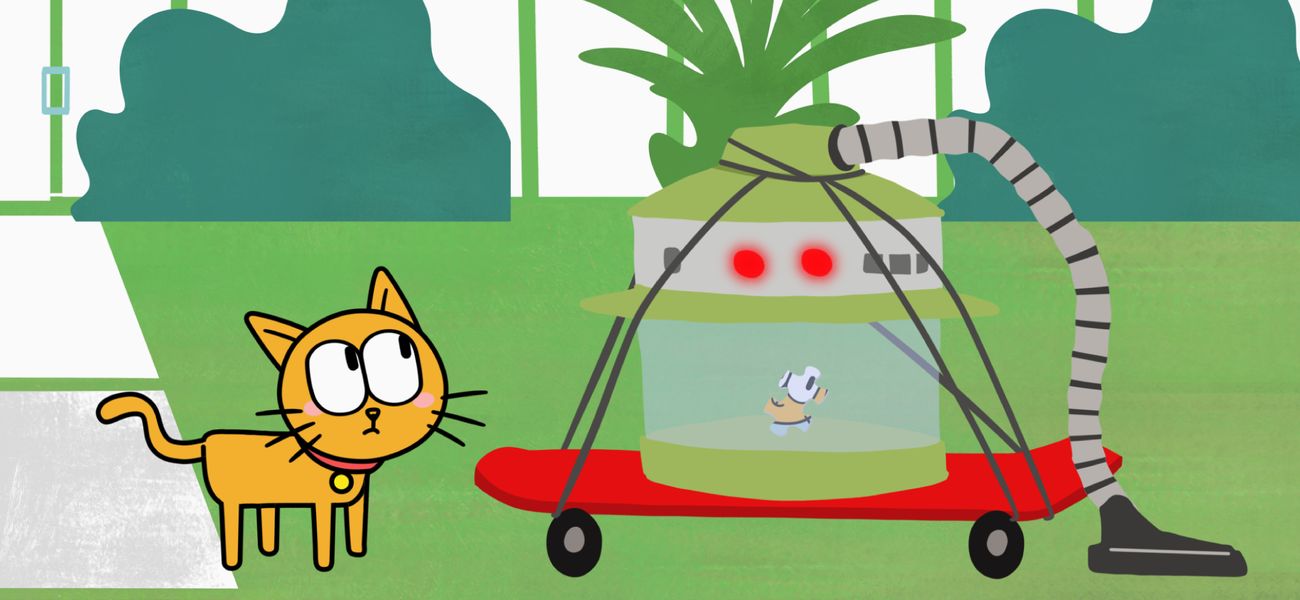 The featured word in this episode is: *étourderie*. The clumsy Scapin sends the pieces of Christophe's puzzle flying into the air! The vacuum cleaner robot eats up some of them. When Christopher finds the missing pieces, the crazy robot destroys what's left of the puzzle! Scapin suggests they create their own puzzle using the remaining pieces.