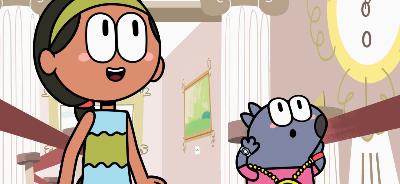 The featured word in this episode is: *lambiner*. Romy and Socrates are excited to go see the Glorious Clock at the museum. But Aunt Rita is just dawdling! They barely manage to see it, but too late to get their miniature Glorious Clocks as souvenirs. Fortunately, aunt Rita had bought some earlier!
