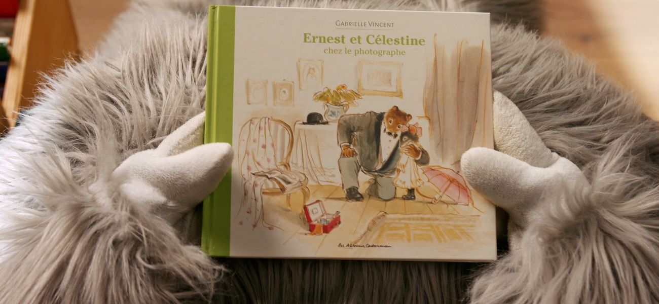 Nina and Léon open a trading card business in exchange for candy. Yétili is the first buyer, but the portraits drawn on the cards are rather surprising. Perhaps it's best to visit a real photographer! Yeti happens to know one: the one of Ernest et Célestine.